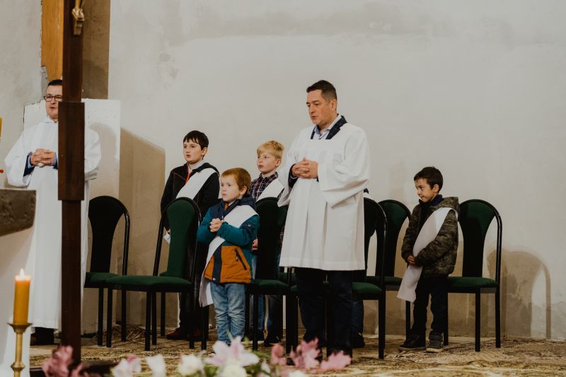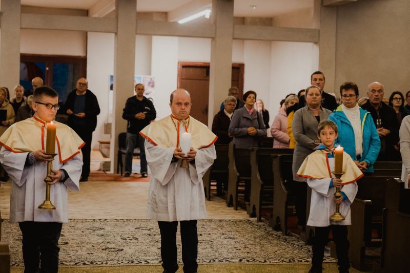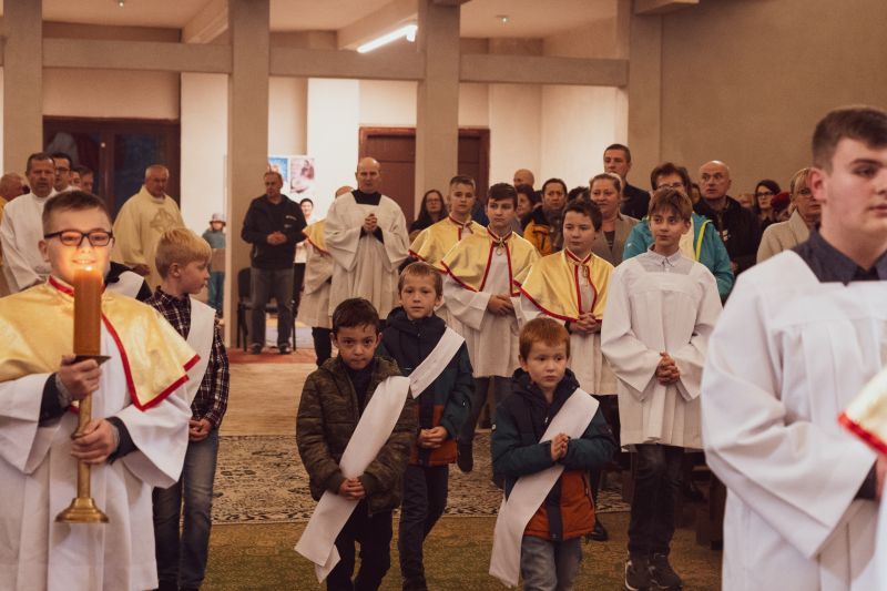 Nowy kościół, który jest jeszcze w budowie, jest pod wezwaniem św. Jana Pawła II. Stąd też, 22 października, kiedy przypada wspomnienie tego świętego, w naszym kościele obchodziliśmy uroczystość odpustową. Po zakończonej Mszy świętej wszyscy otrzymali także większą lub mniejszą, ale zawsze, papieską kremówkę.